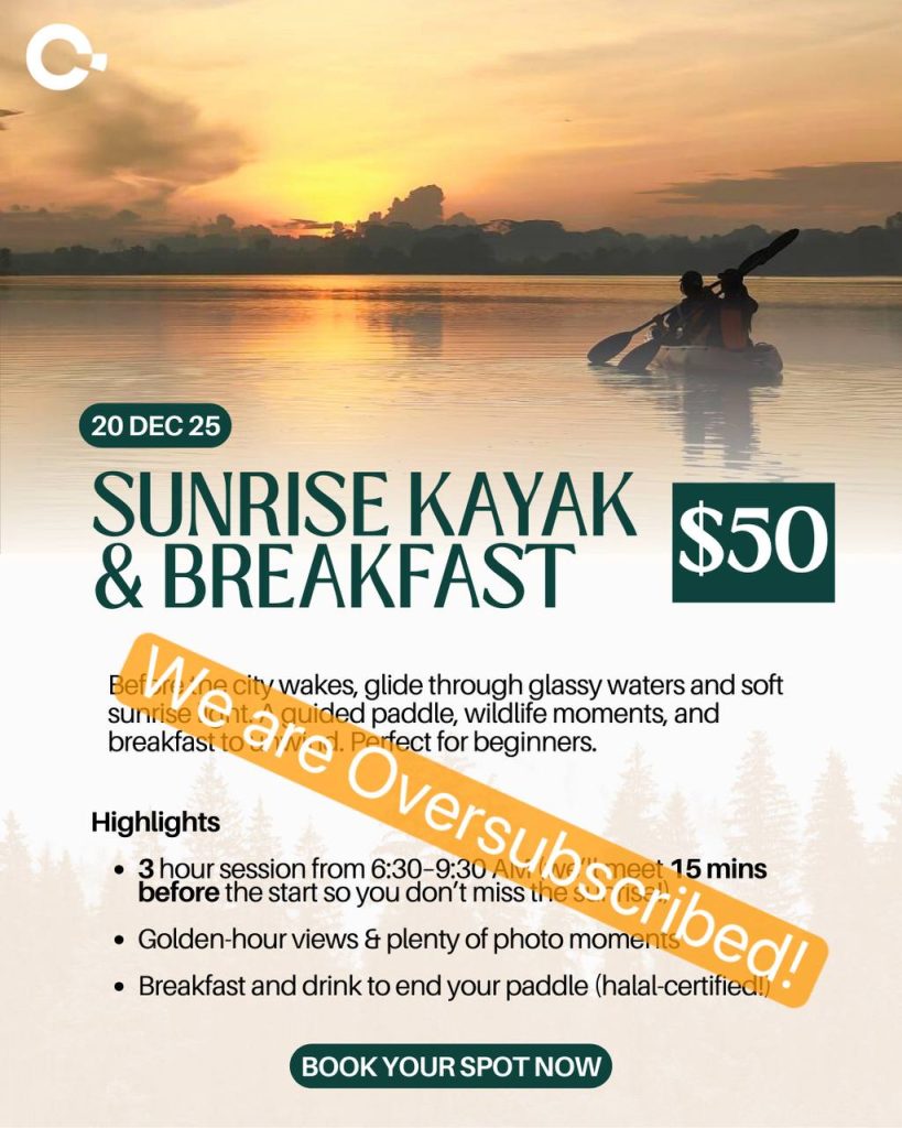 A quick reminder for all activities at Lower Seletar and Lazarus: please arrive 15 minutes early. For everyone’s safety, we may have to turn away participants who are more than 10 minutes late. All sessions will start on time.