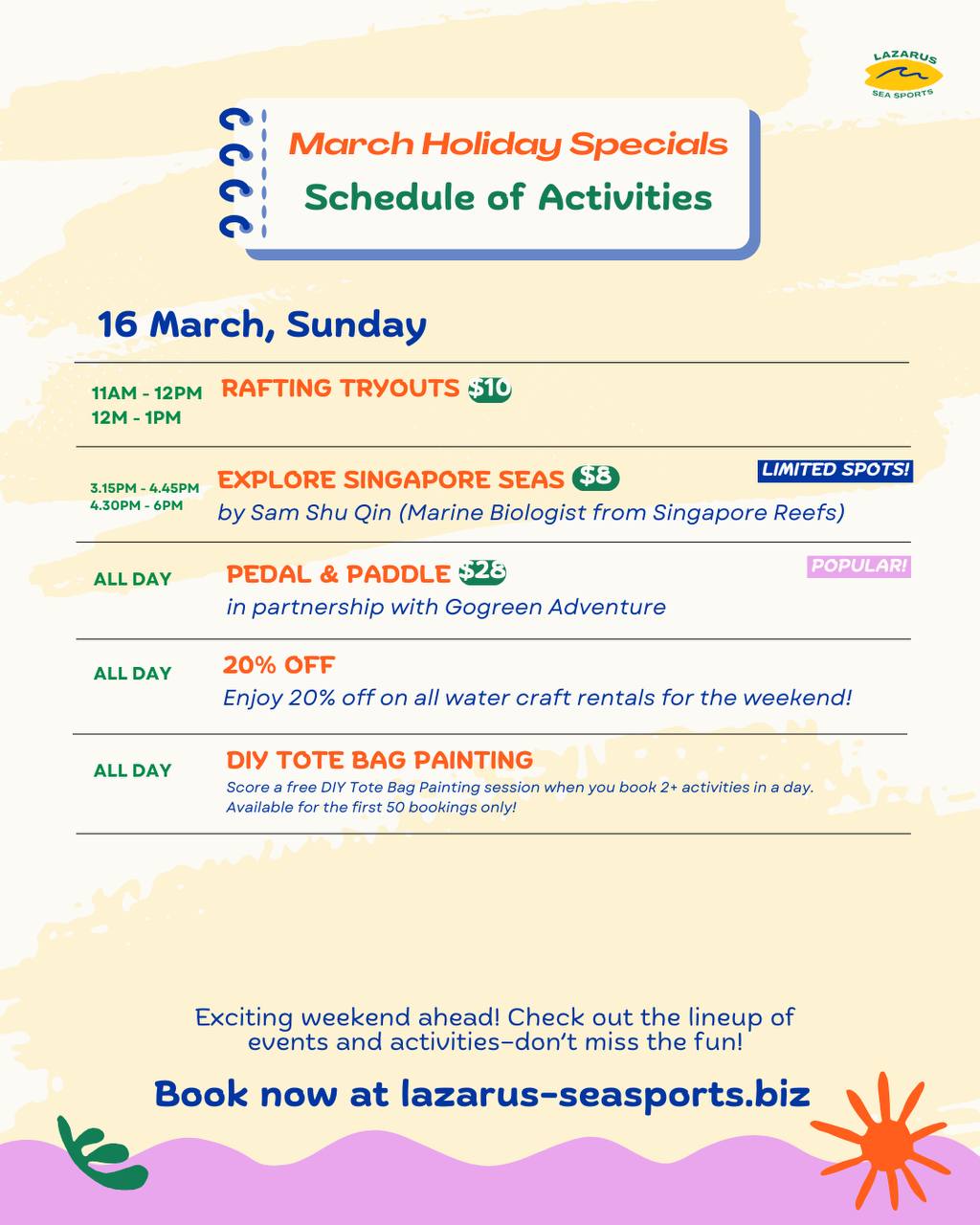 โ This is your final chance to book our exciting March Holidayย Special activities happening this weekend at Lazarus Island! ๐ด
