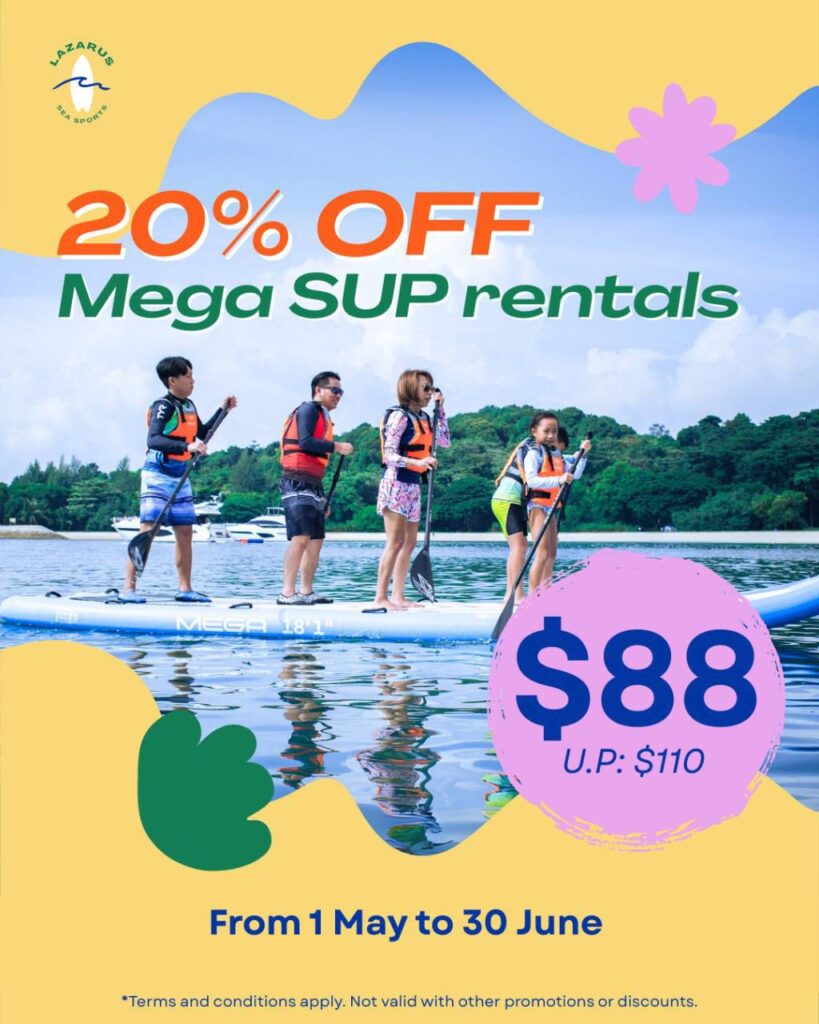 🎉 20% OFF when you book 3 x Stand Up Paddle Board or a MEGA Stand Up Paddle Board